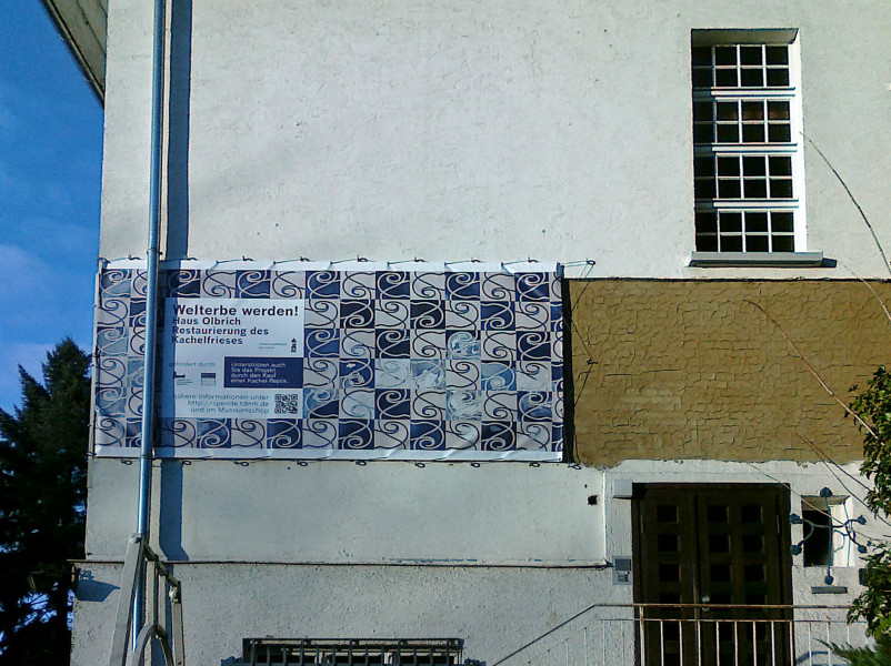 Die Freunde der Mathildenhöhe stellen für diese Sanierung weitere 10.000 Euro zur Verfügung. Die erwarteten Kosten von ca. 30.000 Euro sind damit noch nicht vollständig gedeckt. Deshalb wird versucht, den finanziellen Bedarf durch weitere Spendeneinnahmen, z. B. auch durch Abgabe von Fliesen-Replikaten, zu decken. (28.11.2012)