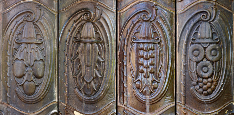 Die Besonderheit dieses in der Form eines antiken Monopteros gestalteten Gartenpavillons sind die acht mit keramischen Platten verkleideten Doppelsäulen, die eine im Inneren ornamental bemalte Kuppel tragen. Eine konstruktive Verklammerung zwischen Säulen und Dach erfolgt über acht keramische Schwanenreliefs, die gleichzeitig Wasserspeier für die Dachentwässerung sind. Die Keramiken wurden 1914 von der "Gail´sche Dampfziegelei und Tonwarenfabrik, Gießen" hergestellt.