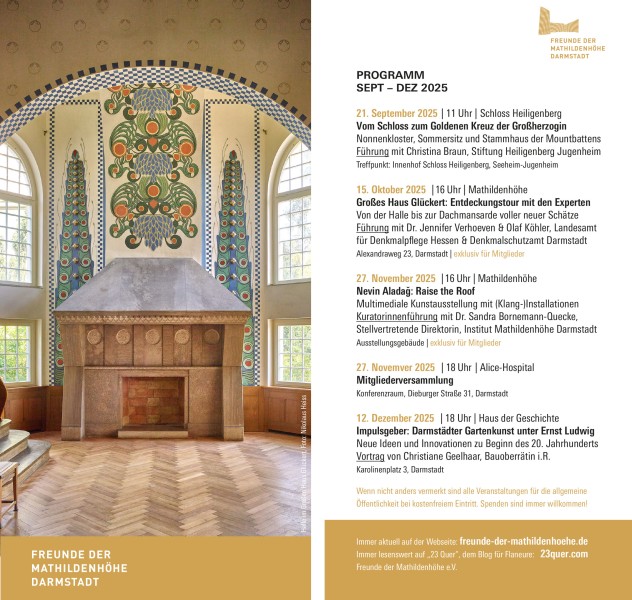 anschließend ab 18 Uhr Mitgliederversammlung des Vereins "Freunde der Mathildenhöhe Darmstadt e.V."